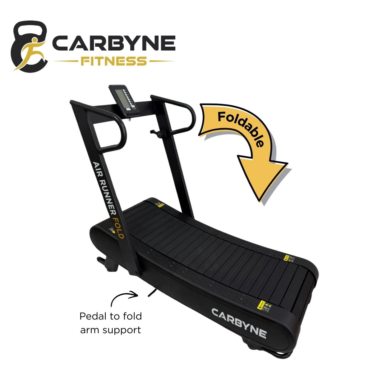 Constructed with a heavy-duty steel frame and slat belt system, the CARBYNE Air Runner Fold is designed to withstand high-intensity training, interval workouts, and repeated daily use.